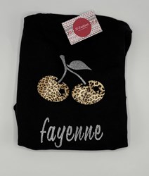 Mooie zwarte trui met panter/glitter kers en je eigen naam.